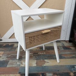 MaxSmeo White Nightstand with Drawer, Mid Century Modern Nightstand, Rattan Side Table, End Table with Storage for Living Room, Bedroom and Small Spac$30Riverside, CA