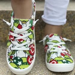 Women's Lace-Up Loafers Christmas Snowman Print Canvas$15Lake Elsinore, CA