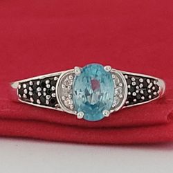 ❤️925 Size 7 Fancy Sterling Silver Blue and White Topaz with Black CZ Ring!/ Anillo de Plata con Topacio Azul y Blanco y CZ! 👌🎁$65Fullerton, CA