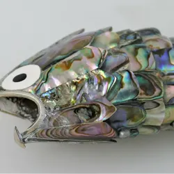 Silverplate 8.5" Abalone 11 Section Articulated Fish Motif Bottle Opener$150Montclair, CA
