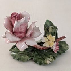 Vintage Nuova Capodimonte Porcelain Rose Candle Holder~Hand Painted~Italy Mid Century$20Anaheim, CA