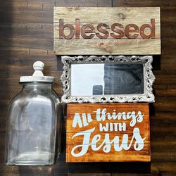 Home Dรฉcor Bundle โ Wall Art, Mirror, Metal Flower & Jar$15Moreno Valley, CA