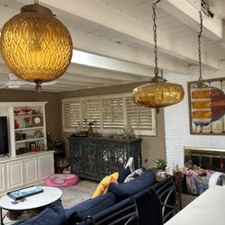 Vintage Amber Glass Hanging Swag Lamps In Great Condition. $50 Each Or $125 For All Three.$50La Mirada, CA