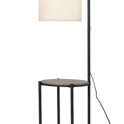 Stylish floor lamp with a built-in table. Has a matte black finish and a faux wood tabletop. Comes with a white shade. New in box.$30Anaheim, CA