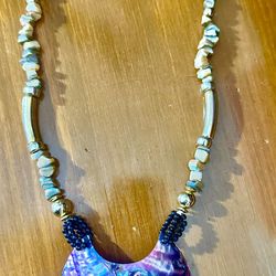 Beautiful Necklace •Shell Abalone Pendant W/ Very Good Quality Beach Shell Beads (14 In.Long) A Very Unique Gift For A Mother’s Day$30Oak Glen, CA