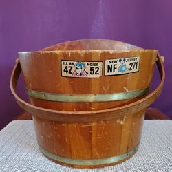 Vintage Wooden Rustic (Firkin Sugar?) Bucket w/ Swing Handle & Divider - Pickup in 91706$40Irwindale, CA