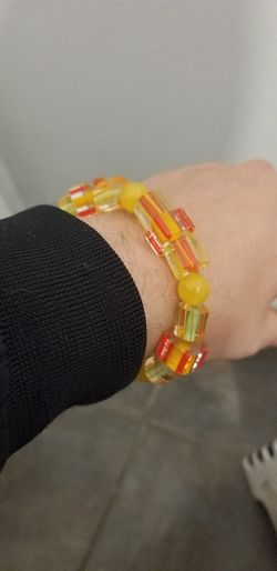 Yellow agate with glass beads large bracelet$15West Covina, CA