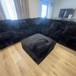 Black Sectional Sofa & Ottoman - Soft Fur Like Corduroy Fabric$1,200Ontario, CA