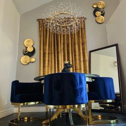 Luxury Navy Velvet Dining Chairs + Glass Table – Gold Base$600Moreno Valley, CA
