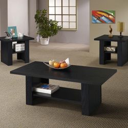 💝 3-piece Engineered Wood Coffee Table Set Black