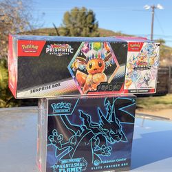 Mega Evolution Phantasmal Flames PC ETB & Prismatic Evolutions Surprise Box + Booster 2 PK$300Riverside, CA