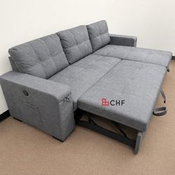 95"W Gray Woven Fabric Reversible Sleeper Sectional Sofa with Storage Chaise Cup Holder Charging Ports and Pockets$649Menifee, CA