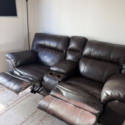 Reclining Leather Sofa w/ Cup Holders – Super Comfy – Priced to Move$100Ladera Ranch, CA