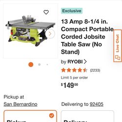 RYOBI CORDED TABLE SAW 10 IN $145San Bernardino, CA