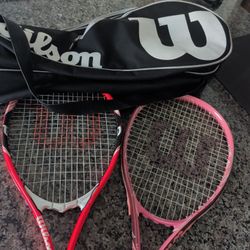 Set of two Wilson tennis rackets with a matching Wilson dual-compartment carry bag. $25Riverside, CA