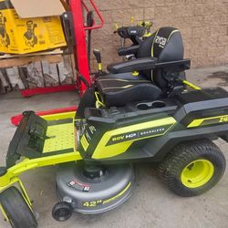 RYOBI 80V HP BRUSHLESS CORDLESS 42"IN ZERO TURN LAWN TRACTOR LIKE NEW$1,500Grand Terrace, CA