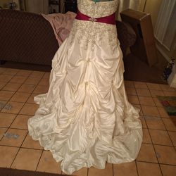 Wedding dress white with red sash at waist$700Wildomar, CA
