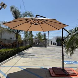 New In Box 10 Foot Diameter Outdoor Patio Offset Cantilever Deck Beige Umbrella With Cross Stand Require Counter Weight $60Covina, CA