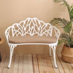 1557e Outdoor Patio Bench, Garden Bench with Cushion All Weather Cast Aluminum Extra Loveseat for Lawn Front Porch Path Yard Decor Deck Furniture Whi$80Bloomington, CA
