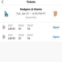 San Francisco Giants Tickets April 21$130Pinole, CA