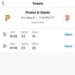 SF Giants Vs Pirates Tickets May 8th$45Pinole, CA
