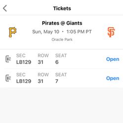 SF Giants Vs Pirates Tickets May 10$90Pinole, CA