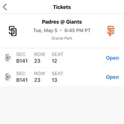 SF Giants Vs Padres May 5th Tickets $24Pinole, CA