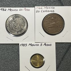 Mexico coins- 1982 un Peso, 1966 20 centavos & 1985 5 pesos$40Hayward, CA
