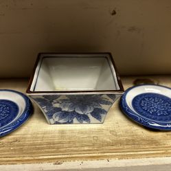 Vintage Blue & White Porcelain 3-Piece Set - Square Bowl & Small Plates$10Alameda, CA