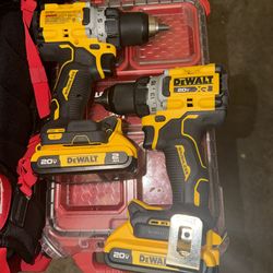 Brand new DEWALT tools compact 1/2” Hammer drill with battery, brushless compact 1/4” impact driver with battery, atomic cordless 1/2” ratchet with b$400San Bruno, CA