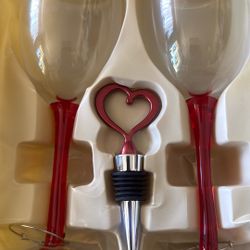 Beautiful Wine Glasses And Heart Bottle Stopper Valentines Day Or Romantic Date$10San Diego, CA
