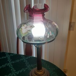 Limited Edition Fenton Rubina Verde Hand Painted Art Glass Lamp$300San Diego, CA
