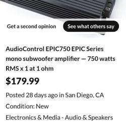 Epic 750.1 Monoblock Amplifier $135San Diego, CA