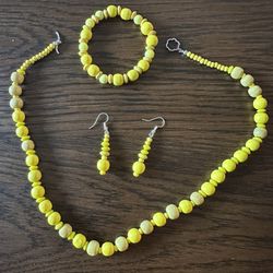 Hand crafted yellow wooden beads necklace, bracelet, earring set$30Escondido, CA
