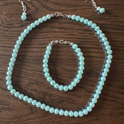 light Blue Glass, Pearl Necklace, Bracelet, And Earrings Set$25Escondido, CA