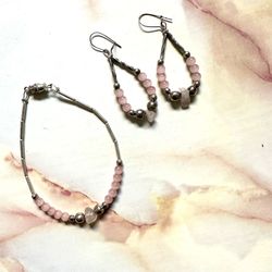 Silver Tone Rose Quarts Bracelet And Earrings Set $28Encinitas, CA