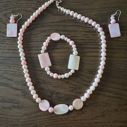 mother of pearl pink necklace bracelet and Earrings Set$30Escondido, CA