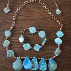 light blue mother of pearl necklace, bracelet, and earrings set$30Escondido, CA