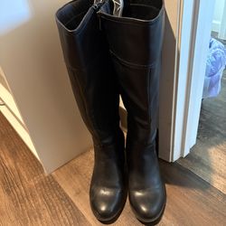 Women’s Black Knee High Boots Size 7.5 Almond Toe Block Heel Zip Tall$40Temecula, CA