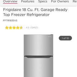 Frigidaire Apartment Size Top Freezer Refrigerator 18 Cu Ft $380Encinitas, CA
