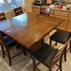 Delivery available- Dark Solid Wood Dining Table W/ Leaf Extension And 6 Chairs $175Murrieta, CA