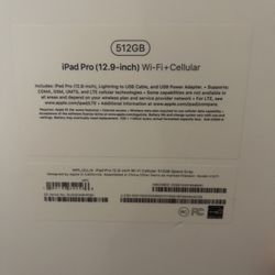 IPad Pro 12.9 4th Gen 1TB WIFI + CELLULAR Open Box Like New $350Escondido, CA