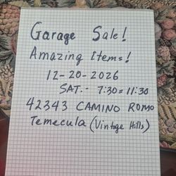 More Amazing GARAGE SALE! Nov 1, Sat 7.30 AM$1Temecula, CA