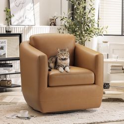 COLAMY 360° Swivel Accent Chair with Pillow, Leather Living Room Armchair No-Sag Foam & Sturdy Metal Base, Fully Assembled Swivel Accent Single Sofa f$160Murrieta, CA