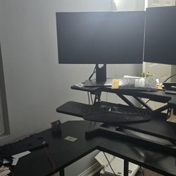 L Shaped Desk And Standing Desk Converter For Two Monitors Height Adjustable.$60San Marcos, CA