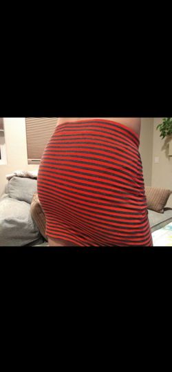 Solid black denim skirt with white stripes. Has nice stretch and pockets. Very, very cute on.$15San Diego, CA