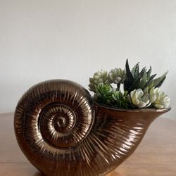 Decorative ceramic planter/ Vase shaped like a nautilus shell with artificial greens$15San Diego, CA