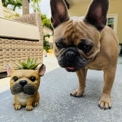 ๐ฅ ๐๐๐ ๐ถ RARE: Large 8โ French Bulldog Planter W Succulent Plant ๐ชด $28Valley Center, CA