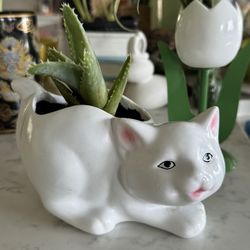 โบ๏ธ๐ฅฐ๐ค Cute White Cat Planter ๐ฑ With Succulent ๐ชด $18Escondido, CA
