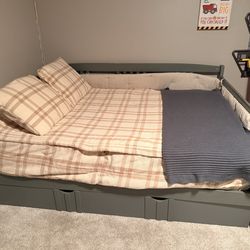 Walnut Daybed Trundle Bed And Mattresses And Bedding & Pillows.$200San Diego, CA